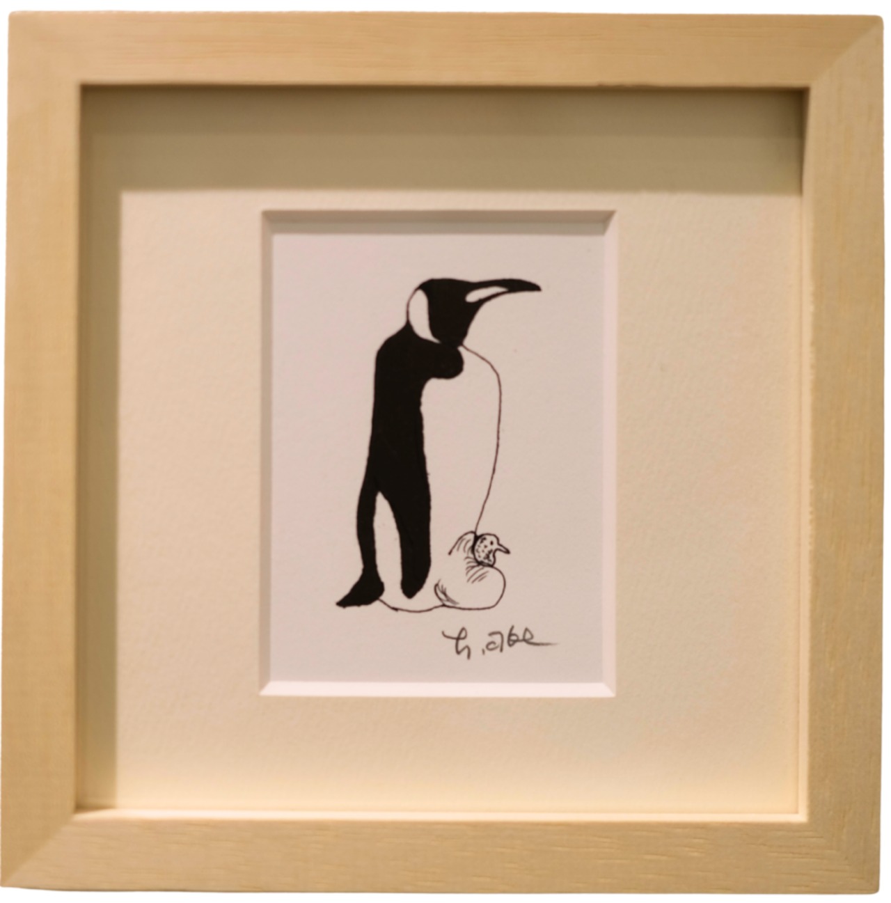 「キングペンギンの親子」あべ弘士 直筆作品